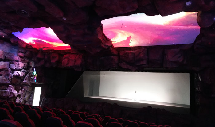 另外采用LED天幕屏和石头进行融合,打造了“女娲补天 ”的观影厅,让观众能够感受了“女娲补天 ”的震感。